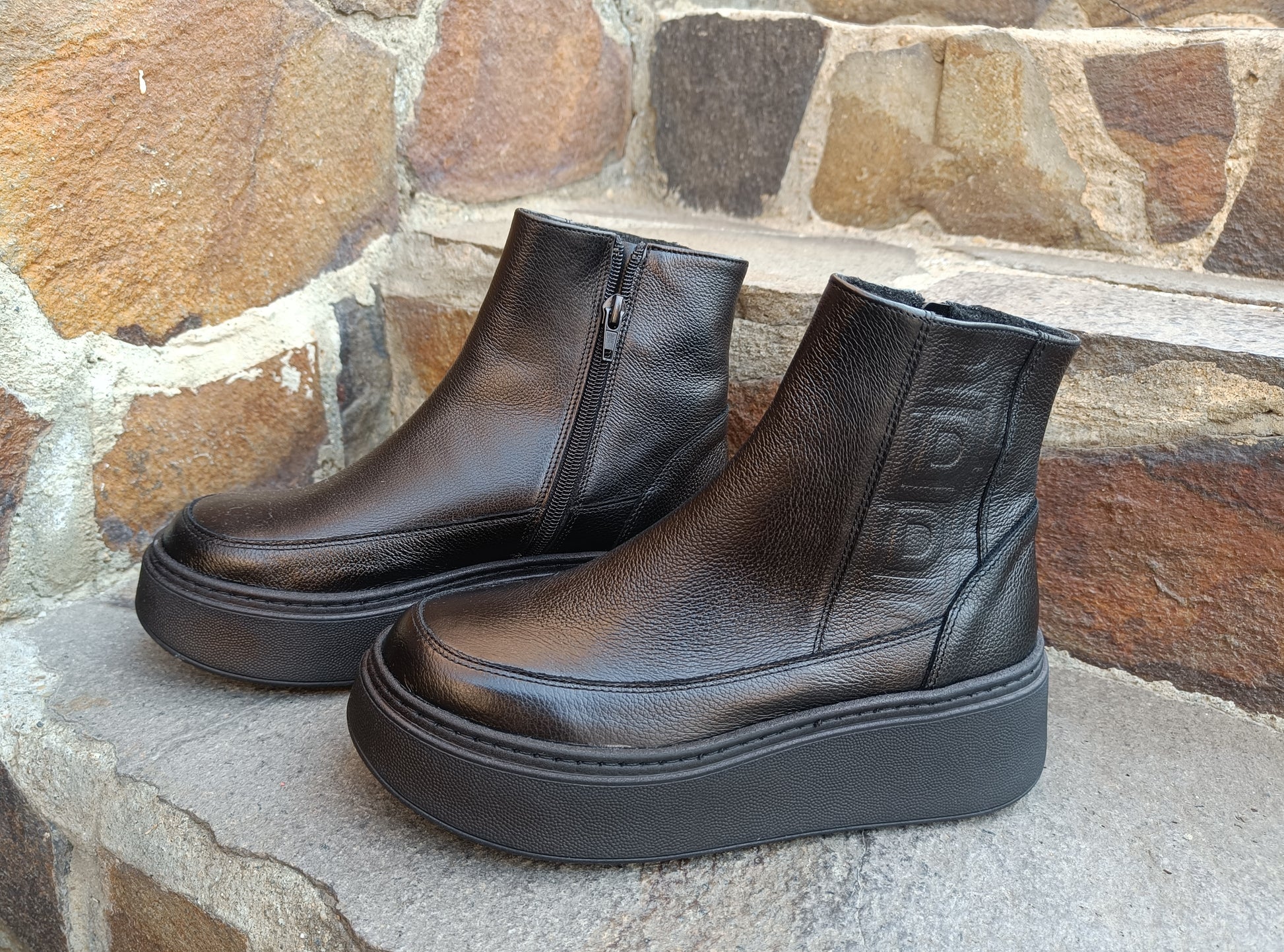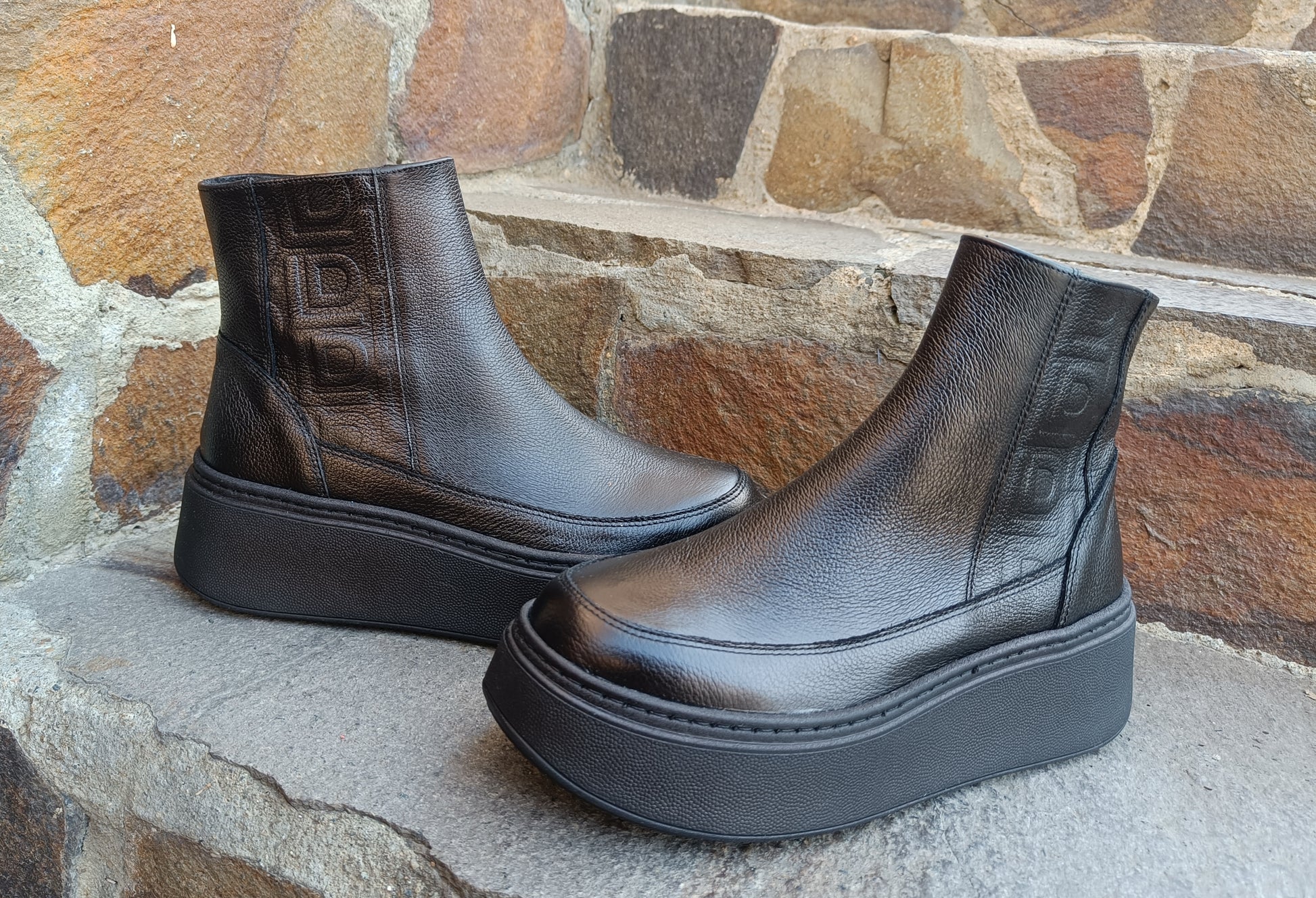 Botine Negre Piele cu Talpă Înaltă Lux by Dessi