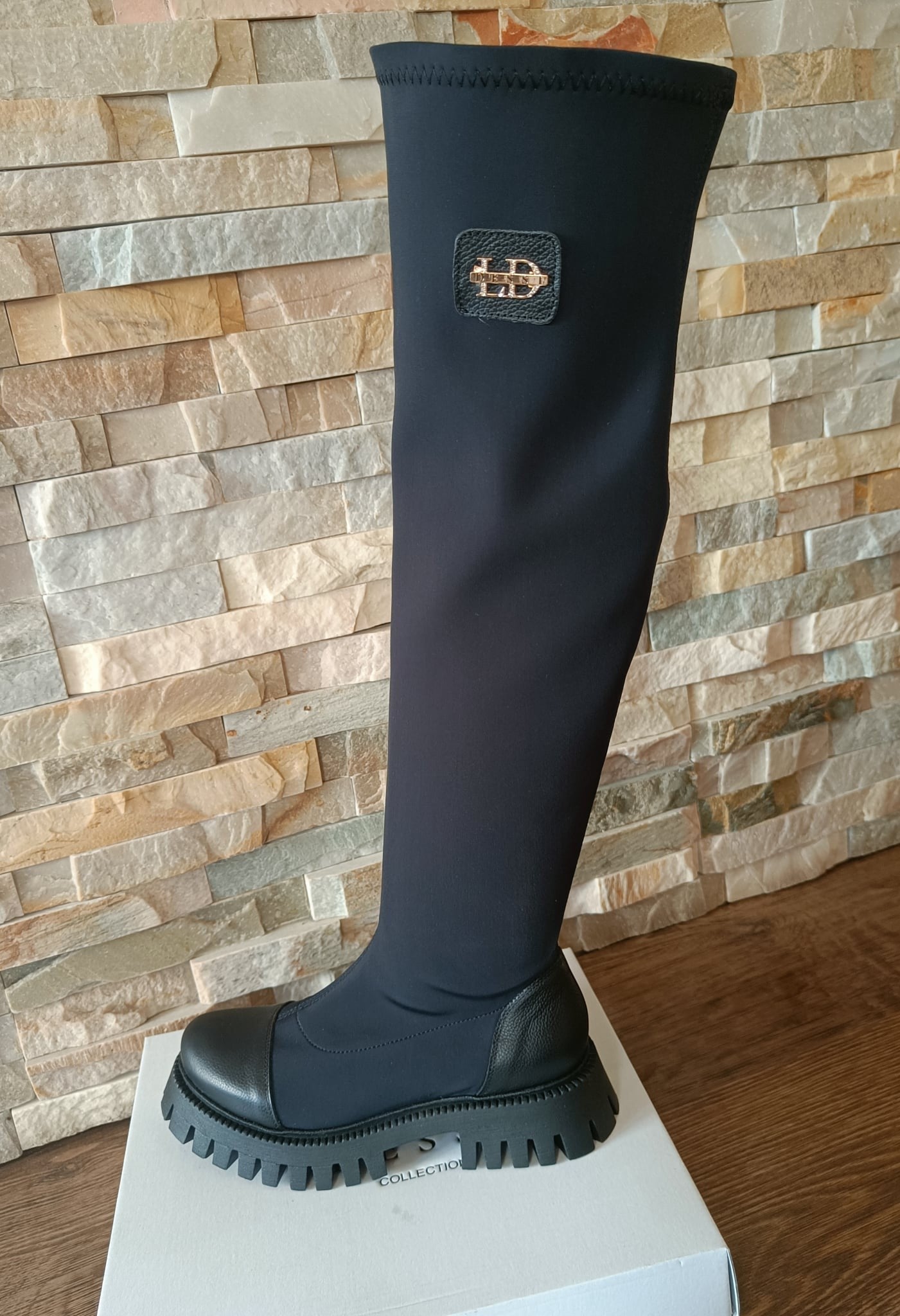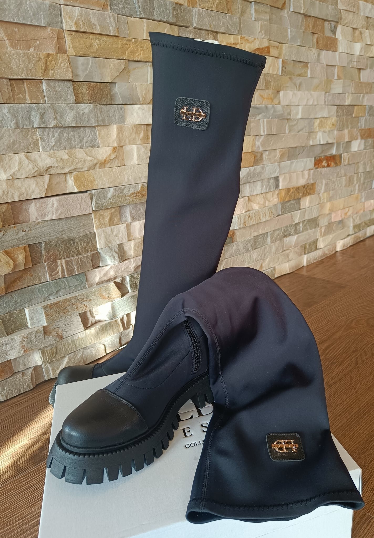 Cizme Elastice Negre cu Talpă Groasă Lux by Dessi