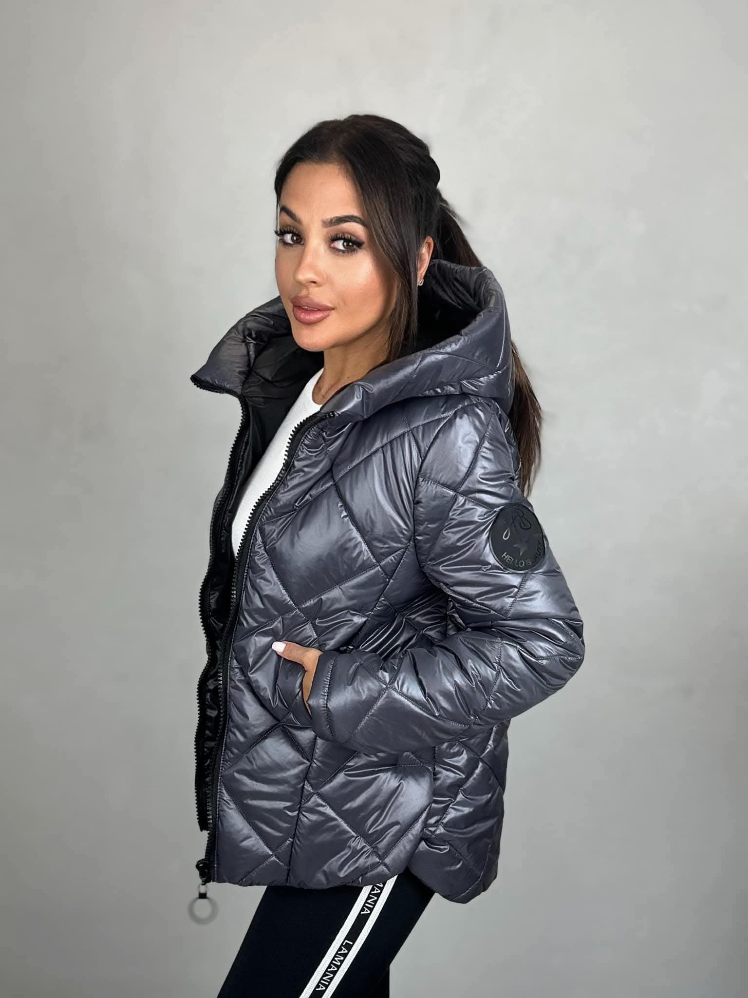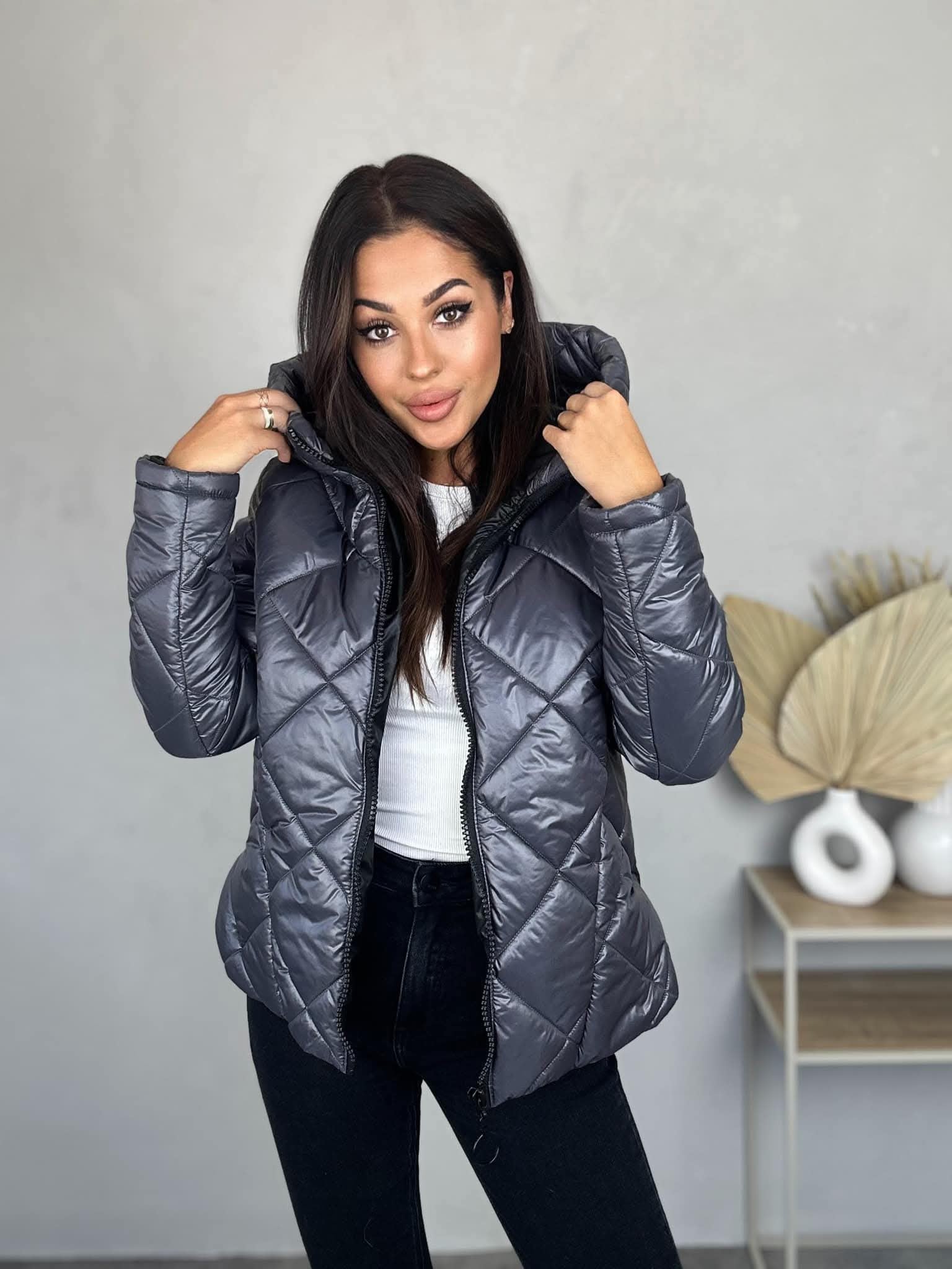 Geacă Matlasată Gri Cu Glugă