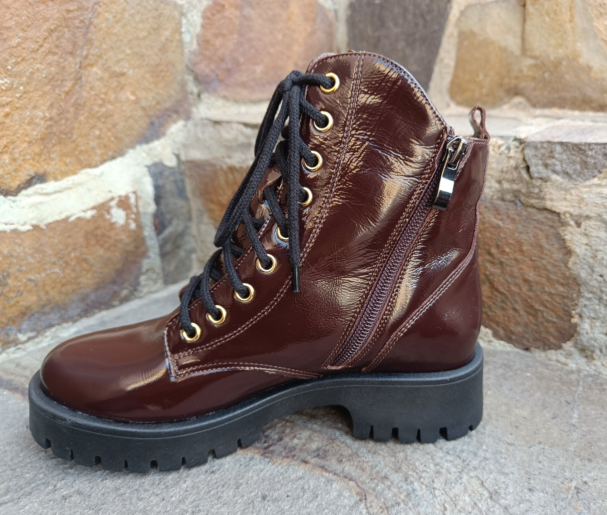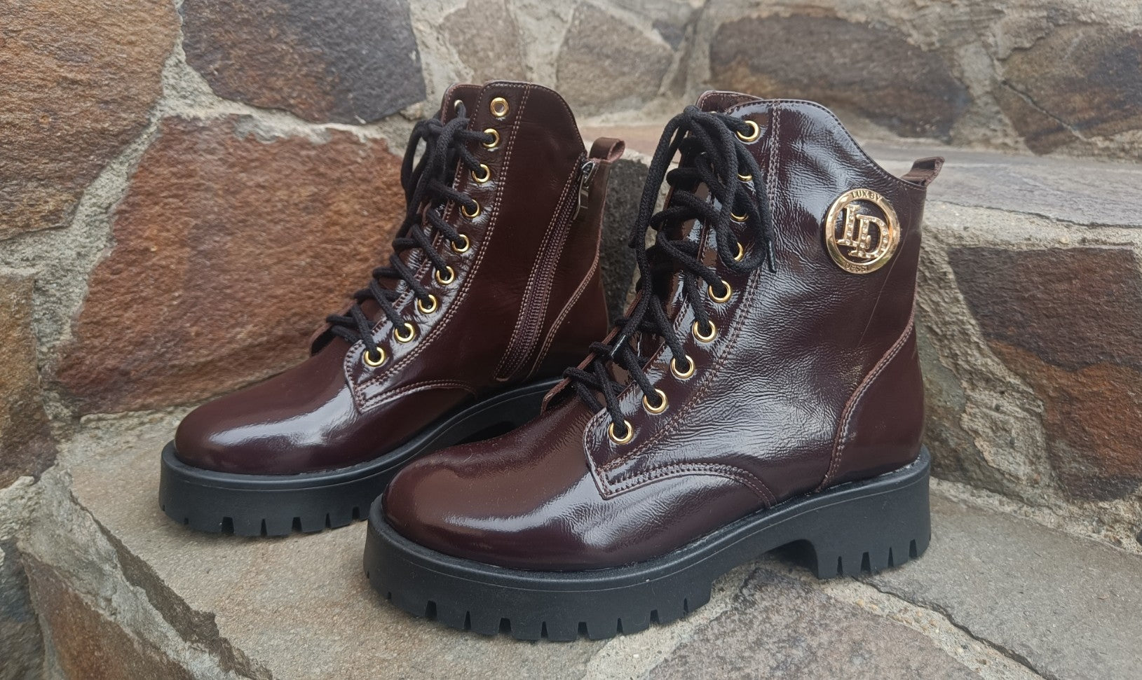 Acește ghete lăcuiți chocolate Lux by Dessi ,sunt realizați din piele lăcuită de înaltă calitate, fiind comozi, stilizați și ușor de asortat la ținute sport, casual sau chiar cu o fustă. Interiorul este căptușit pentru confort în sezonul rece, iar designul cu detalii aurii oferă un plus de eleganță. Un model versatil și modern, perfect pentru zilele de toamnă și iarnă.