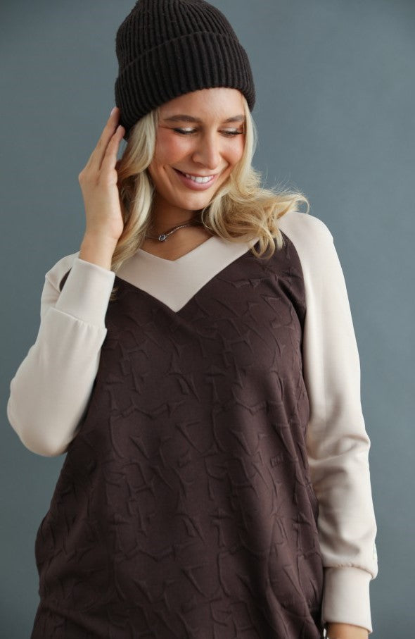 Rochie comodă și practică Warp Zone, perfectă pentru ținute de zi cu zi. Materialul moale și textura discretă îi oferă un aspect modern, iar combinația de culori o face ușor de asortat.