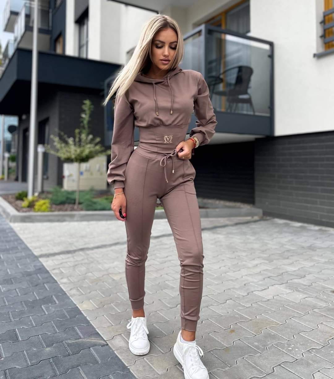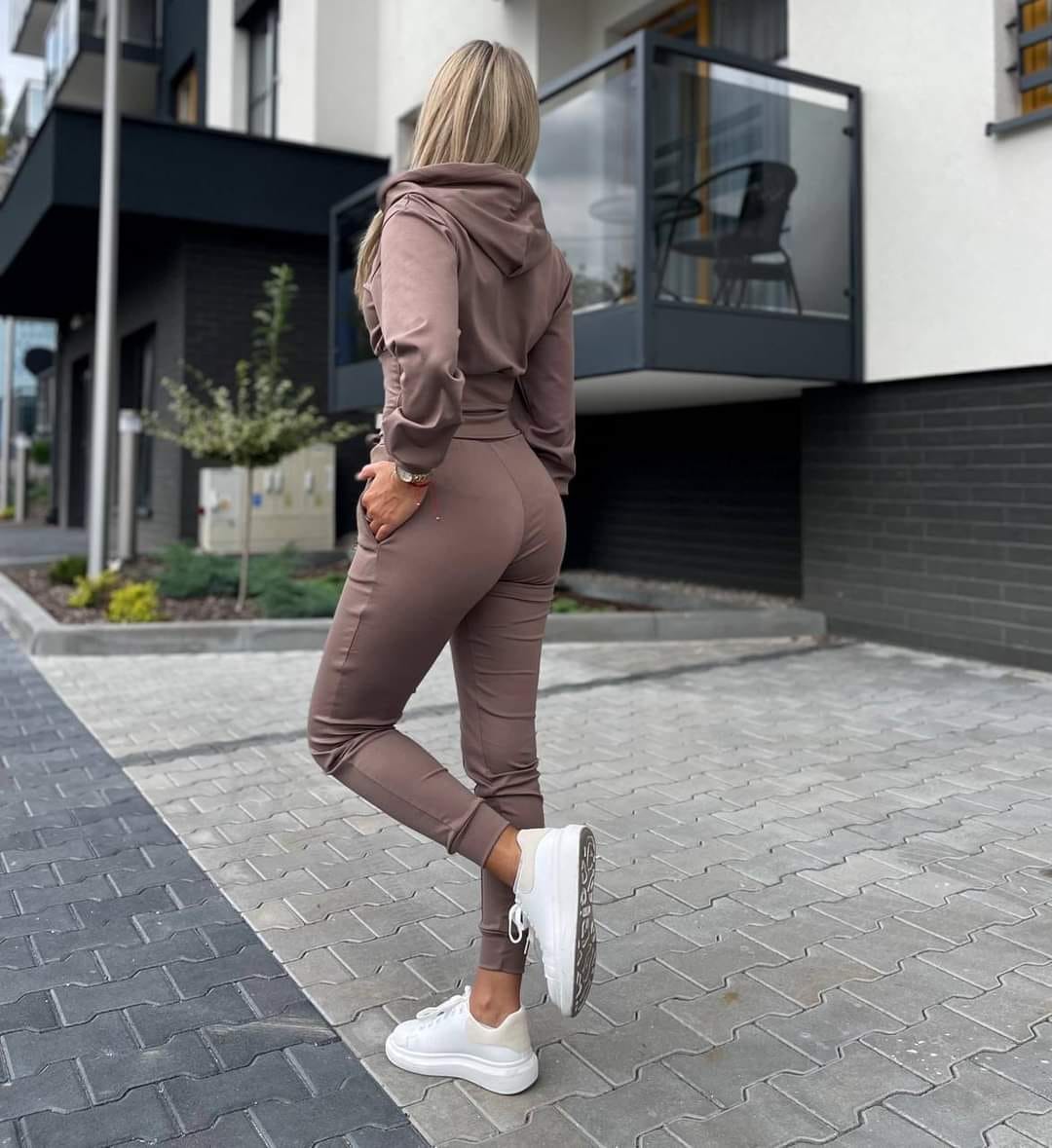 Acest trening din bumbac de înaltă calitate este alegerea perfectă pentru confortul zilnic. Designul său modern, cu o linie de croială subțire, îmbină stilul și confortul, oferindu-ți un look relaxat, dar sofisticat. Materialul este alcătuit din 80% bumbac și 20% lycra, ceea ce îl face elastic și confortabil, ideal pentru activitățile de zi cu zi sau momentele de relaxare. Talie reglabilă cu șnur și detalii subtile care adaugă un plus de eleganță.